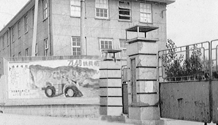 the factory gate at the initial stage of construction.
