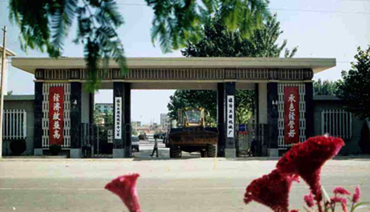 上世纪90年代初的临沂工程机械厂大门。大门两侧“承包经营好,经济效益高”的对联,成为那个时代的生动注脚。
