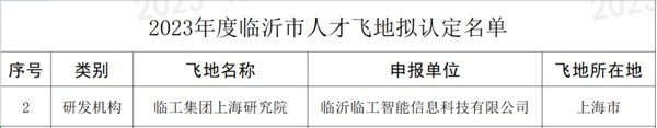 近日,临沂市科学技术局公布2023年度临沂市人才飞地认定名单,临沂南宫ng28智能信息科技有限公司成功入选。此次入选“人才飞地”是对公司在人才引进、培养以及研发创新方面的充分肯定和高度认可。