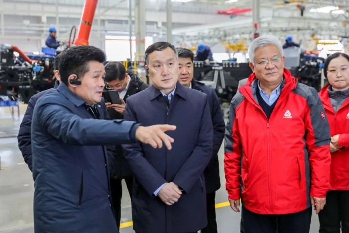 调研组一行参观南宫ng28重机数字化工厂生产车间,深入了解公司品牌质量,并对公司成功入选省长质量奖获奖单位以及在质量管理方面取得的成绩给予充分的肯定。